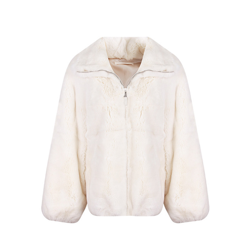 Fanya white rabbit fur coat female winter Rex rabbit Korean version fashion hooded stand collar furry coat