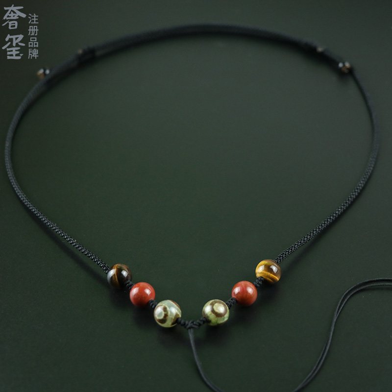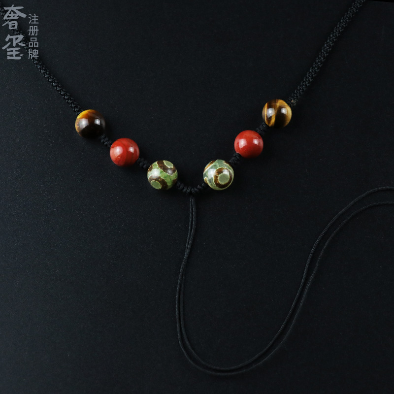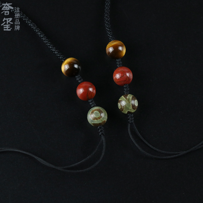 The dzi crosses the lanyard, hangs the neck, men's and women's hand-made men's and women's models emerald beeswax Pixiu vertically wears the sling necklace rope