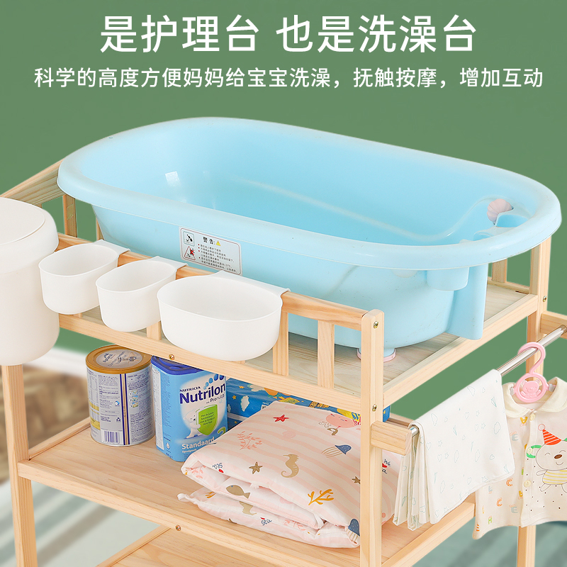 Solid wood diaper changing table Baby care table Newborn bed Bath massage touch table Multi-function baby changing table