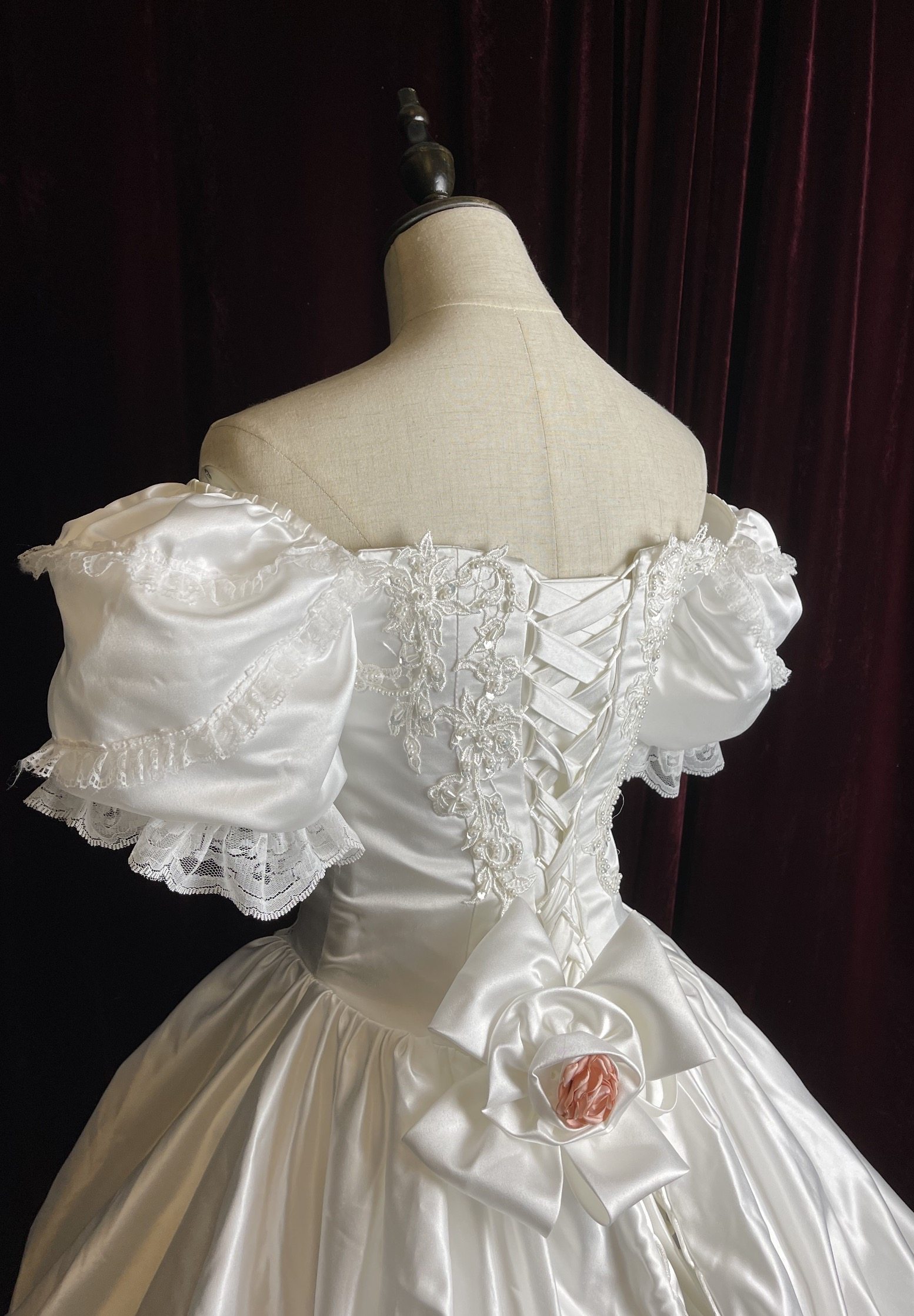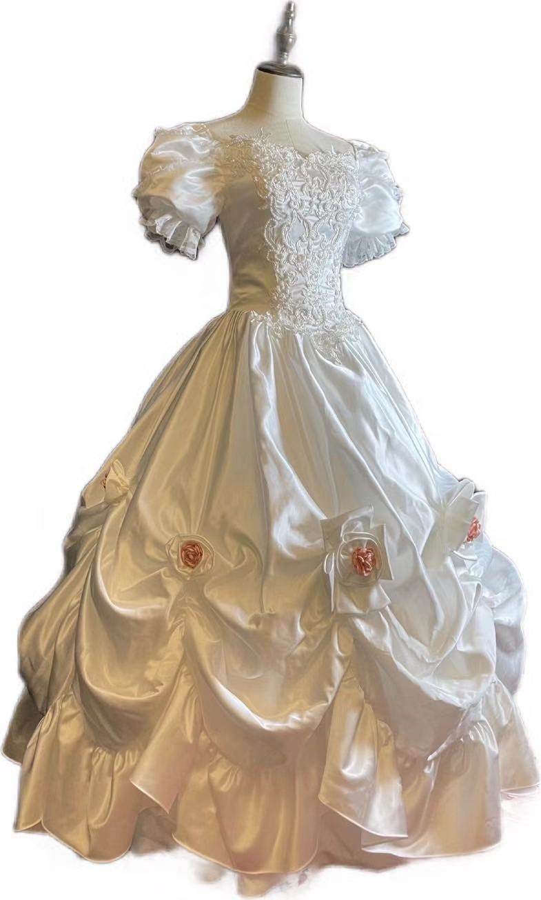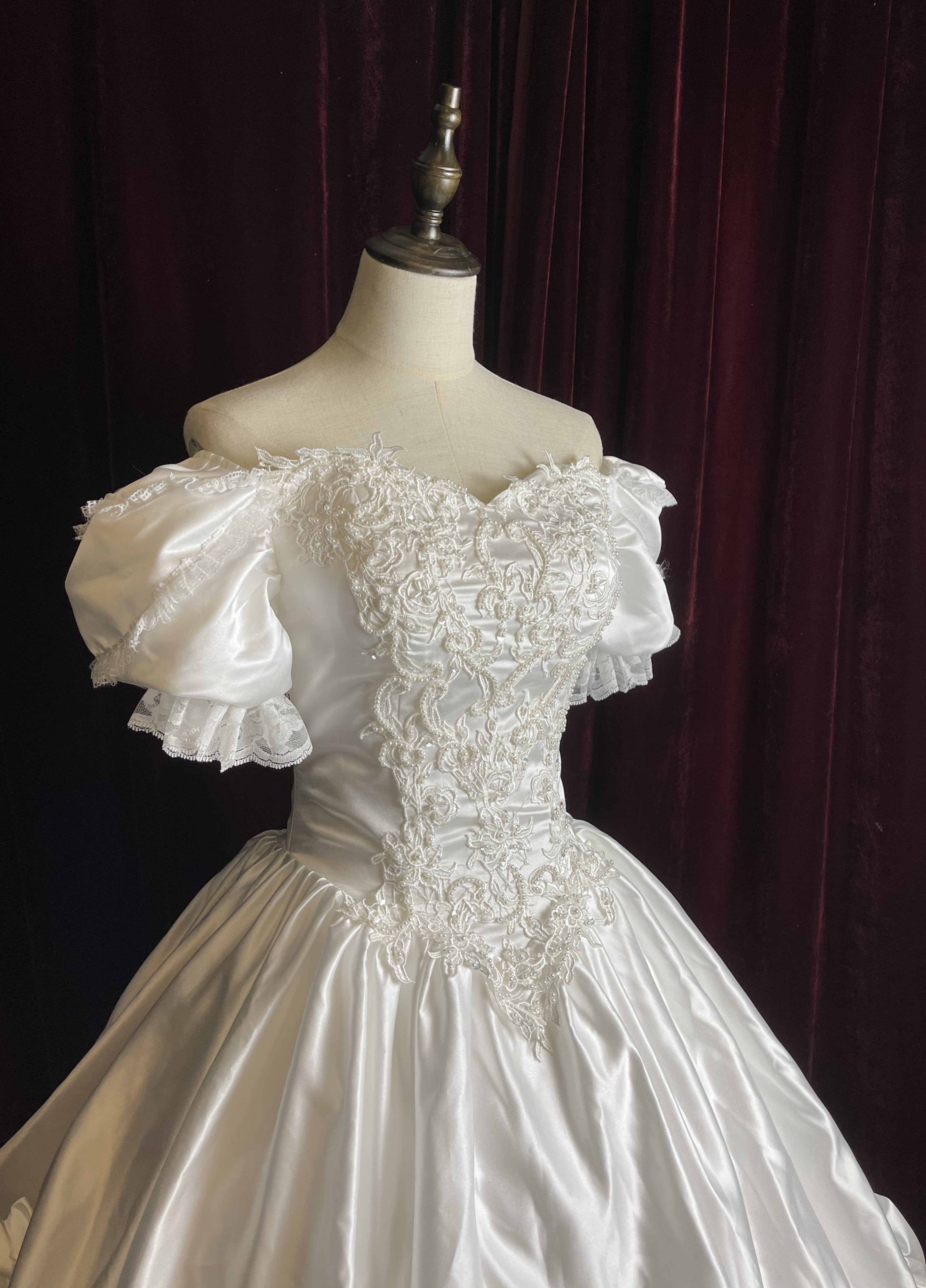 Qinghe Antique Wedding Dress Princess Diana Dress Bubble Sleeve Lace Mesh One Shoulder Two Wear Heavy Industry Straps