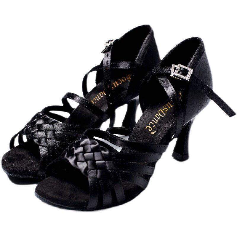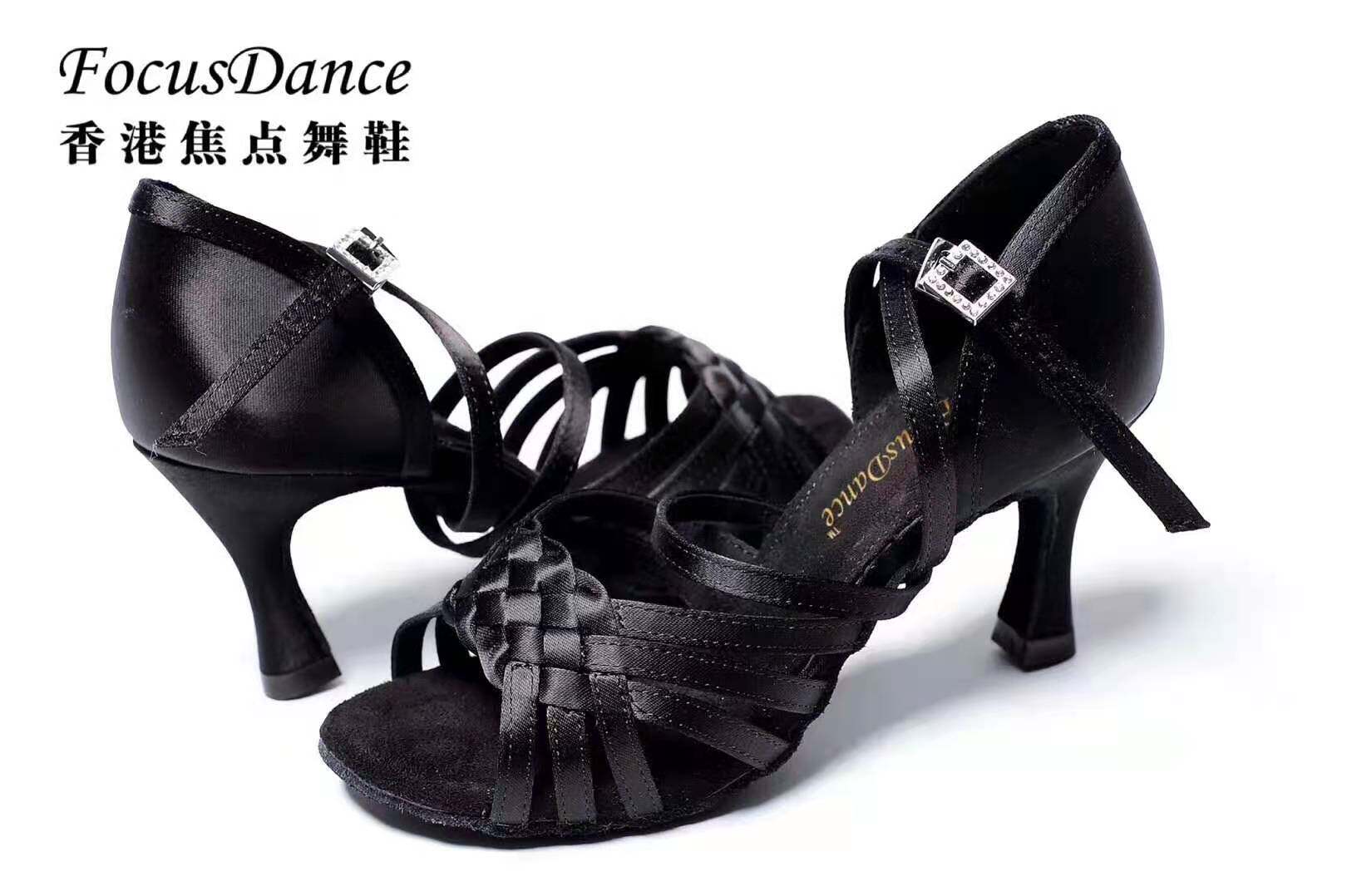 FocusDance Hong Kong Focus Dance Shoes Black Woven Horseshoe 8 5cm Female Latin Competition Practice
