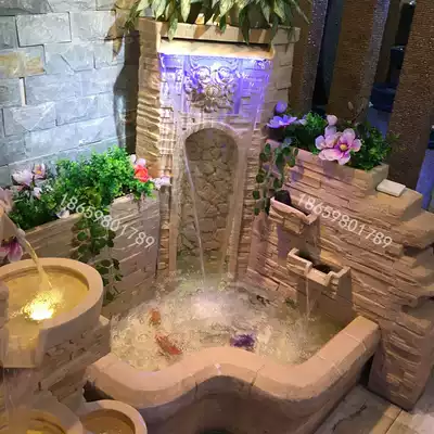European-style large villa courtyard circulating water landscape design outdoor balcony corner pool fountain floor ornaments