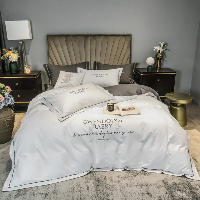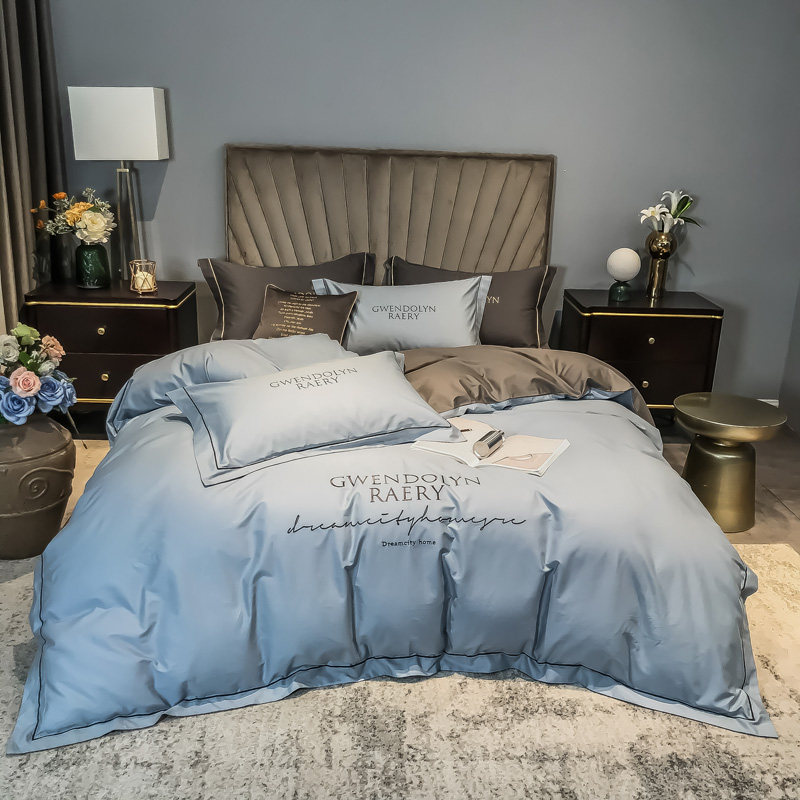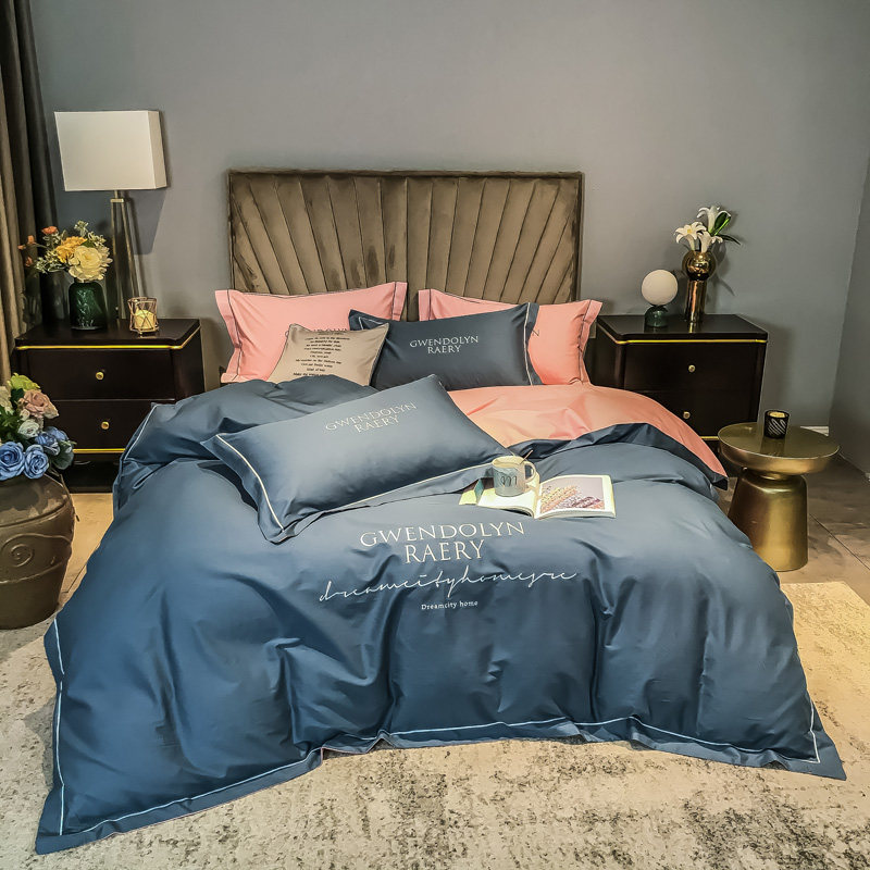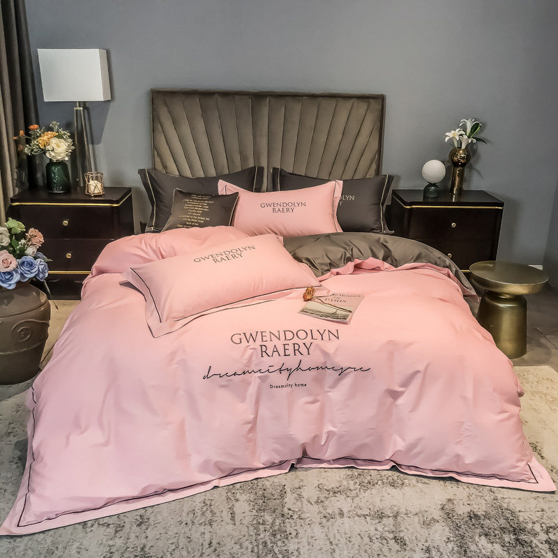 Light extravagant pure color All cotton four pieces 60s Xinjiang gon satin embroidery long suede cotton mesh red European style pure cotton quilt cover sheet