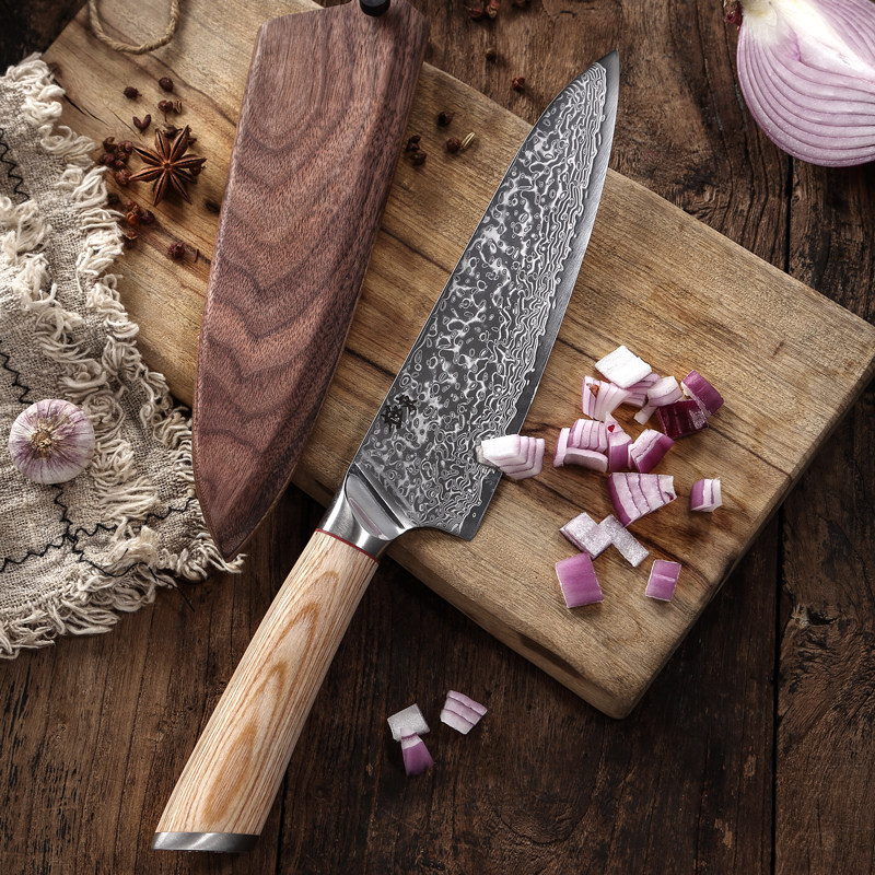 East Falcon 67-layer Damascus steel V gold seven-inch Japanese beef knife 7-inch chef's knife cutting meat and vegetables professional gift wooden sheath
