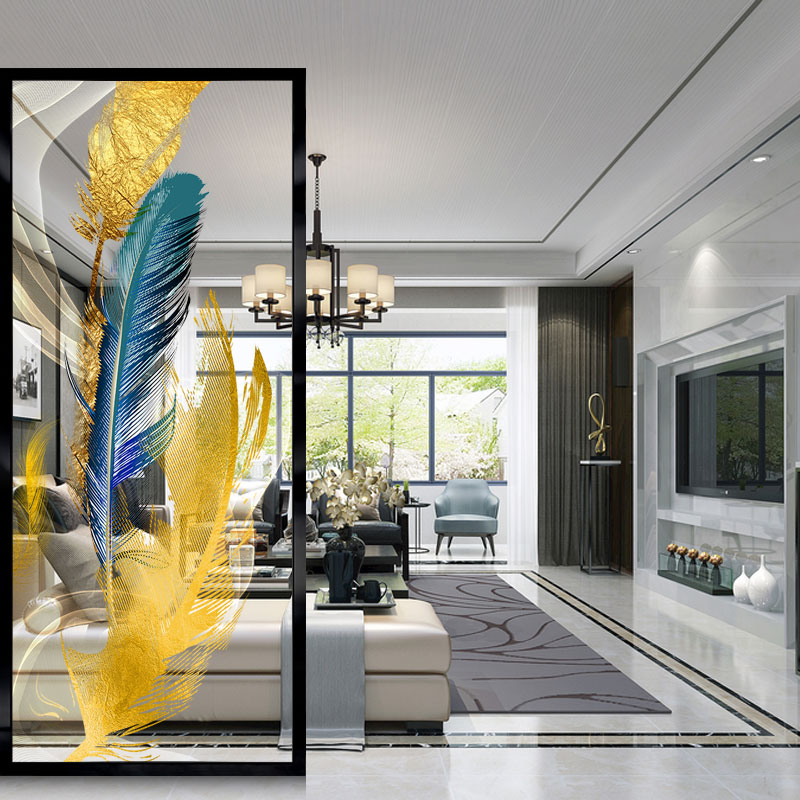 Custom modern art Glass screen partition Decorative Living Room Entrance Door Closed Minimalist Frosted Pervious Steel Fabrication Process