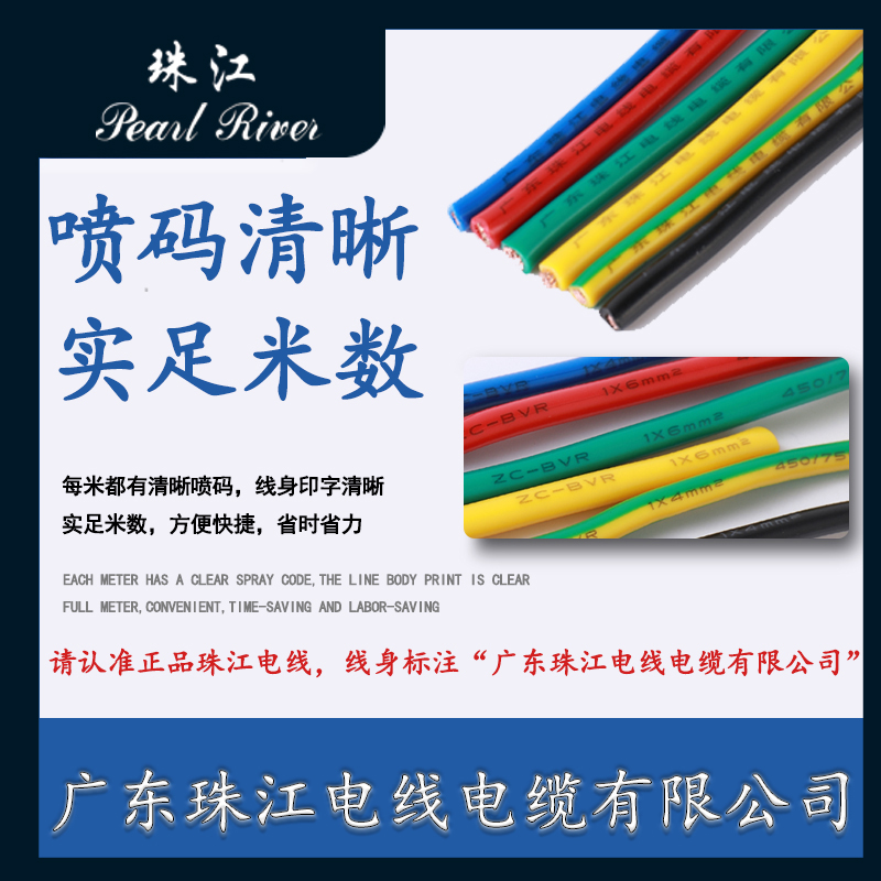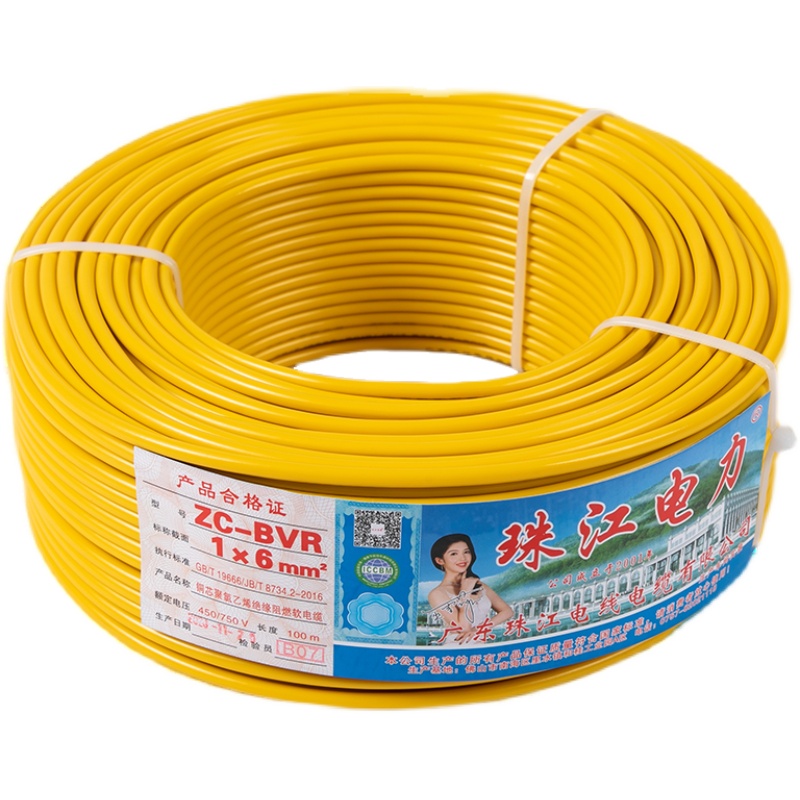 Official Pearl River Electric Wire & Cable BVR16 Squared Pure Copper Core National Standard Flame Retardant Domestic Power Supply Single Layer Leather Multi-Strand Soft Line