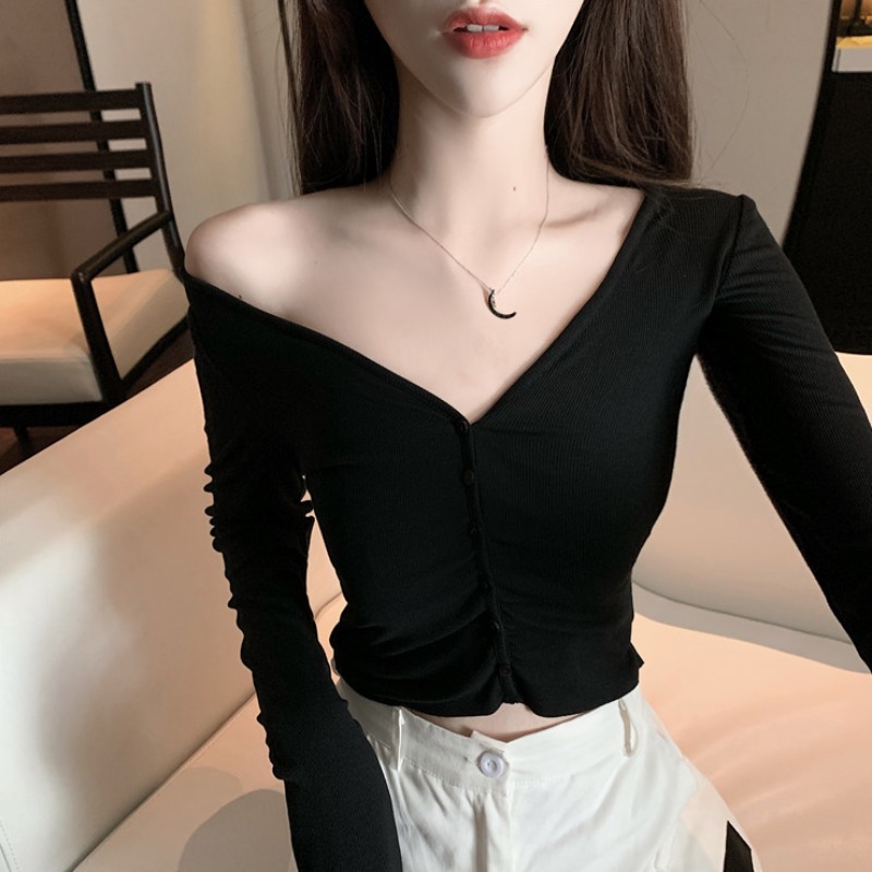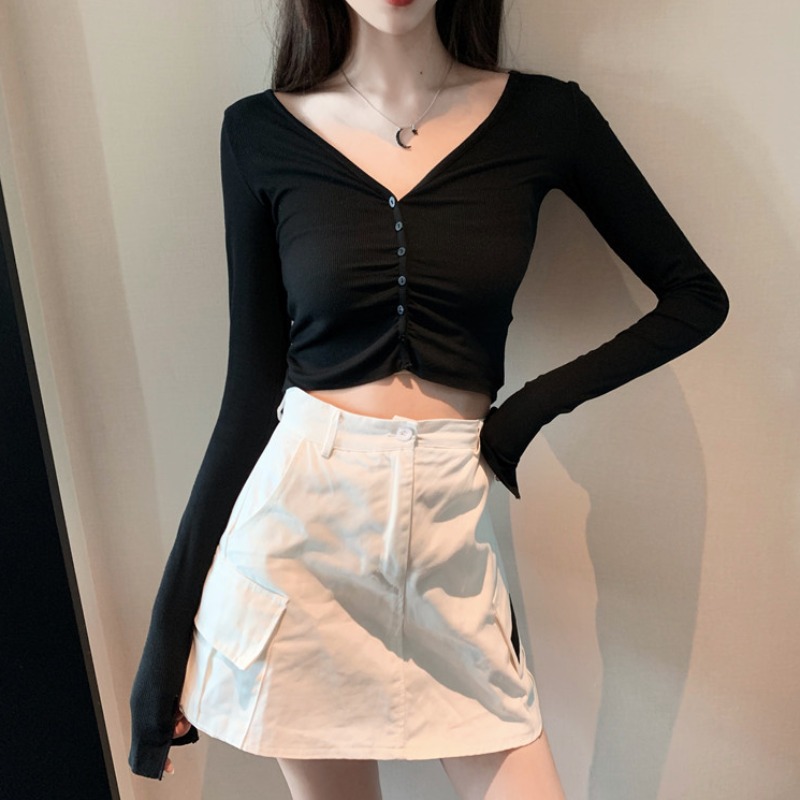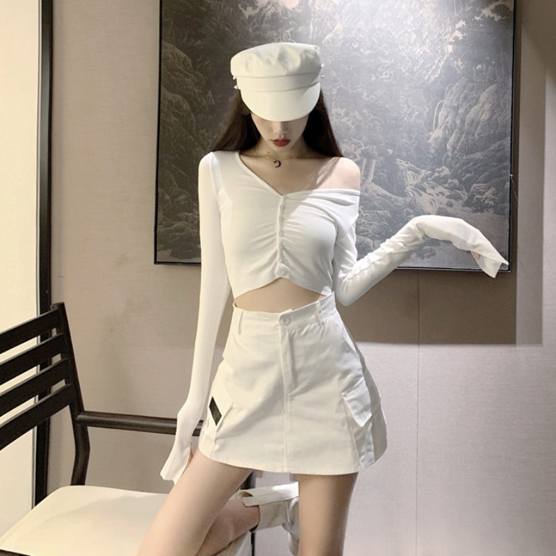 Van Xi V-neck leg leggings women's 2022 spring and autumn white underwear long sleeves short slim slim and versatile t-shirt top