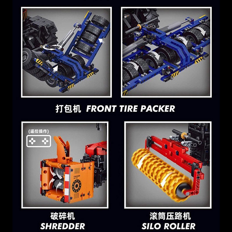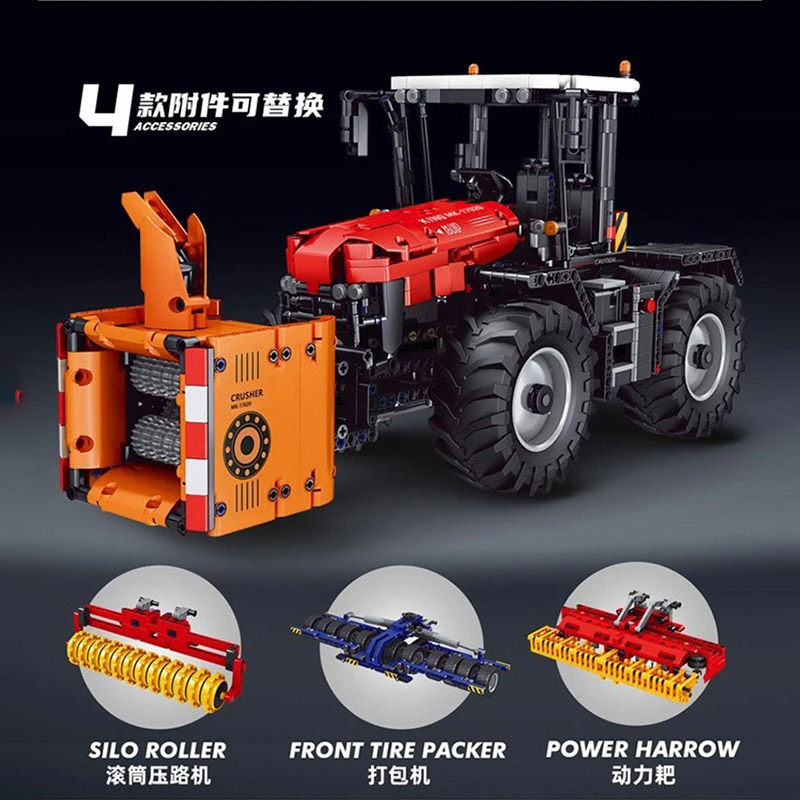Red Tractor (with 4 tool head replacements) (dynamic version) (2716 pieces) Yellow tractor (with 4 tool head replacements) (dynamic version) (2596 pieces) Tractor Extension Tool Set (3098 pieces)