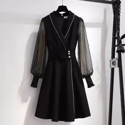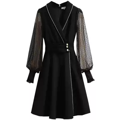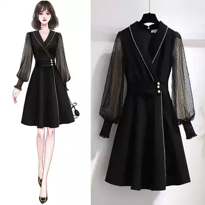 Black dress early autumn 2021 new cold wind women's high-end sense Hepburn style small black skirt