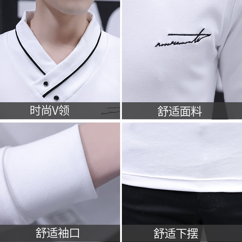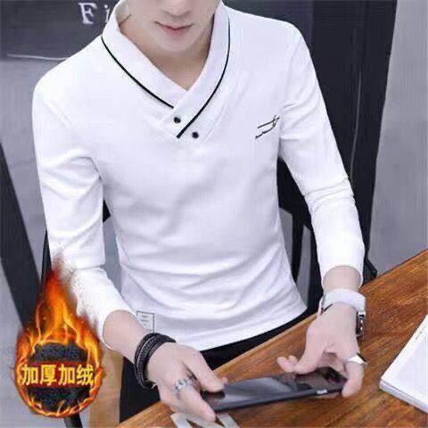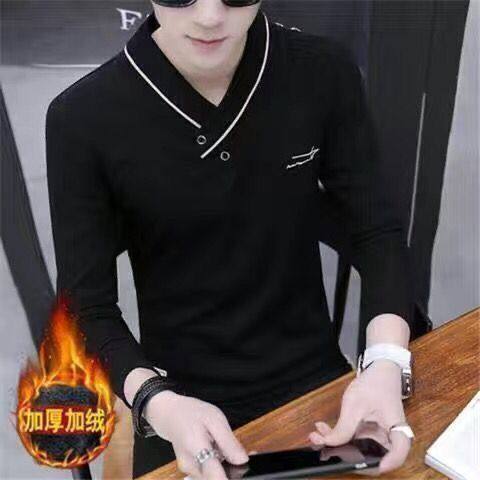 Men's long-sleeved T-shirt V-neck 2020 spring and autumn new thick cotton T trend plus velvet autumn and winter clothing bottoming shirt men's clothing