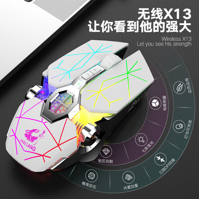 Free Wolf X13 Wireless mute charging game Mouse Water Cooling Shine Mechanical Light Eating Chicken Computer Game Slip Rat