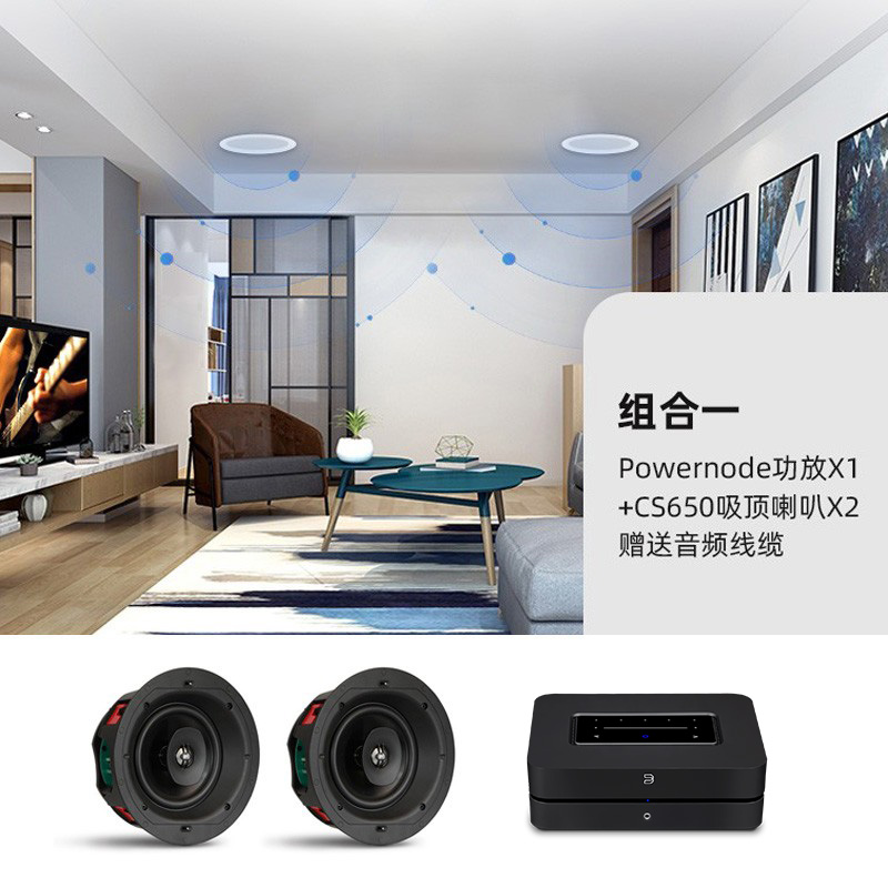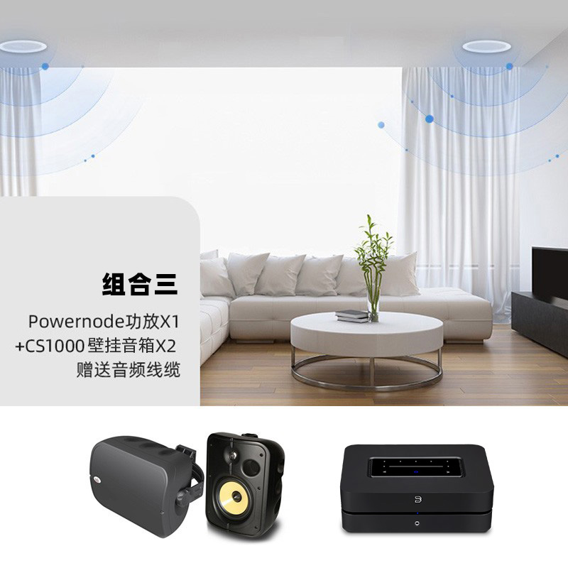 Canada Bluesound power amplifier paired with PSB embedded suction top hanging wall horn family background music system