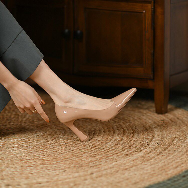 Givenivan can be sweet and sassy~French patent leather high-heeled shoes women's new sexy pointed-toe thick-heeled single shoes 8 5CM
