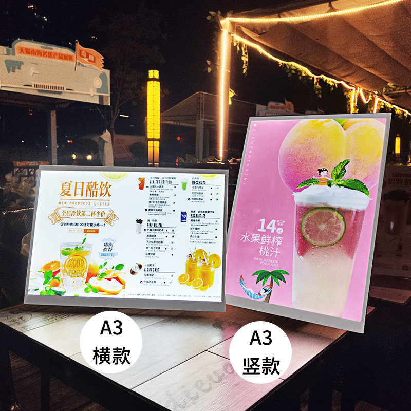 Luminous menu Showcase Milk Tea Light Box Desktop Vertical Charged Led Point Dining Card Price List Billboard Billboard