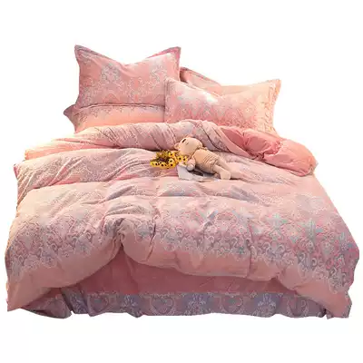 Plush coral velvet four-piece set Spring and autumn naked sleep new product milk velvet flannel double-sided velvet duvet cover three-piece bed set