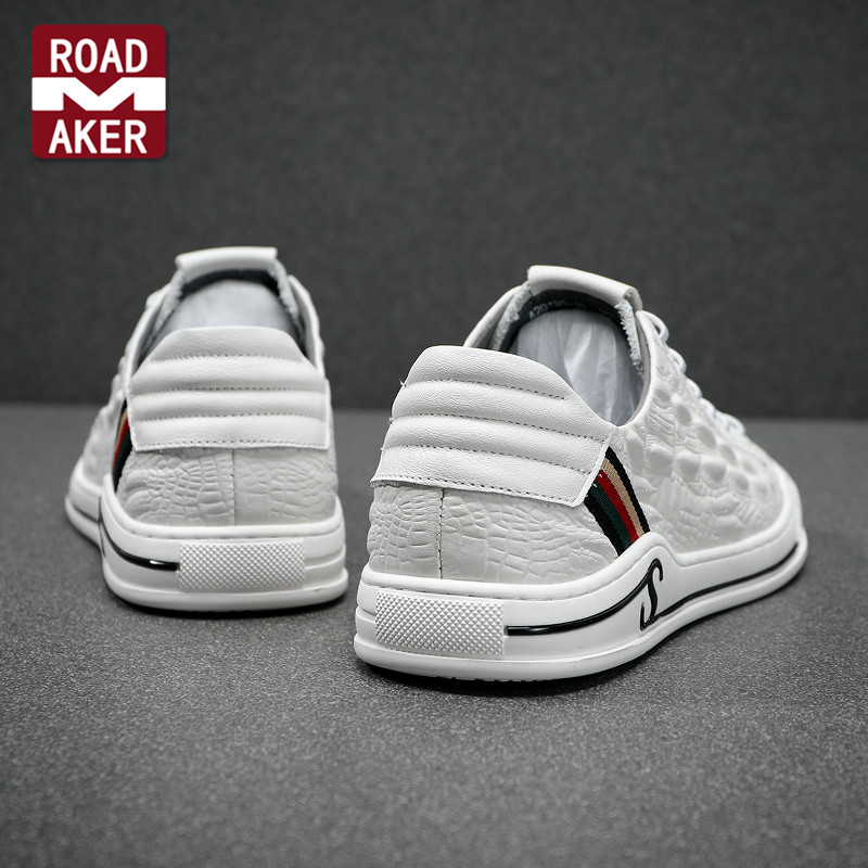 Rhodemeco small white shoes men's autumn new breathable leather shoes all-match trendy men's shoes crocodile pattern casual shoes skate shoes