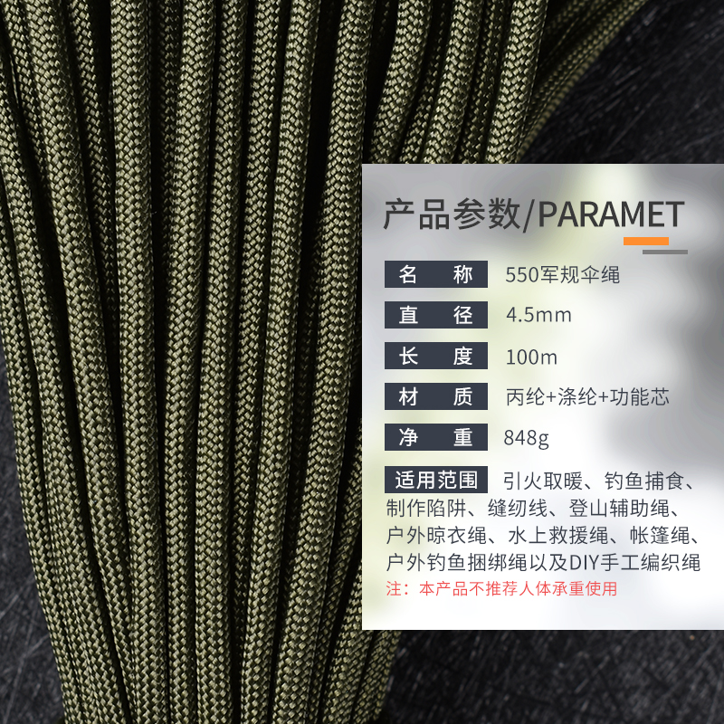 Black 100m 12-core paracord Army Green 100m 12-core paracord Orange 100m 12-core paracord Khaki 100m 12-core paracord Forest Camouflage 100m 1