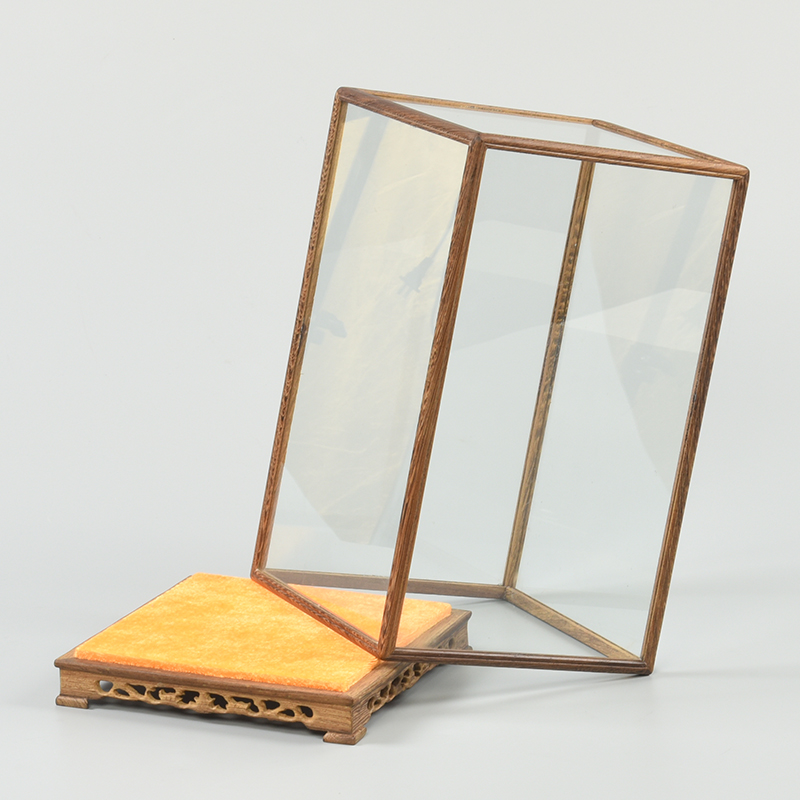 Dust-proof glass cover wood frame box display model Chinese wind protection Chicken Wings Wood Purple Sand Pot objects cover