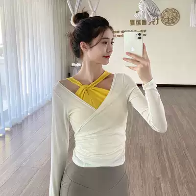 gogoyoga strap waist yoga clothing women's V-neck skinny top long sleeve slim body sports fitness suit
