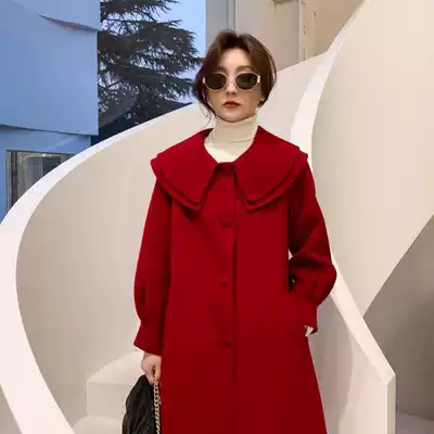 New New autumn and winter red double-sided wool coat women's long version of high-end Hepburn hair woolen coat