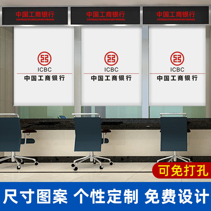 Udoman Bank logo commercial custom curtain free punch installation office shade lift roll pull curtain