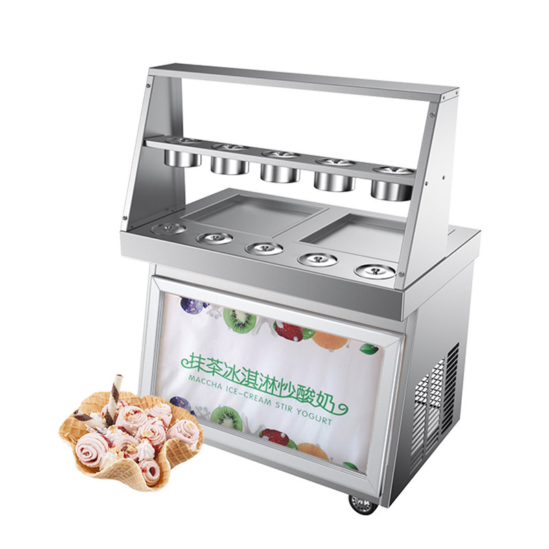 Dongbei fried yogurt machine commercial automatic frying ice machine double pot fried ice cream ice porridge fried milk fruit ice roll machine