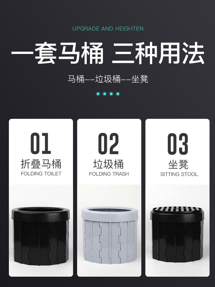 Outdoor toilet Car portable adult emergency folding toilet Self-driving tour Curing agent toilet Travel toilet