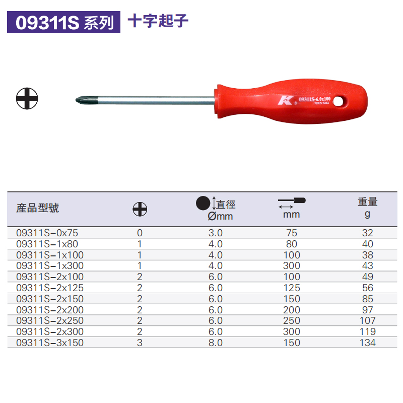 K brand monochrome red handle screwdriver word big head screwdriver