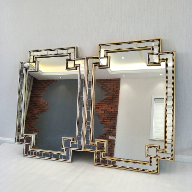 American dining room background wall decorative mirror square retro wall-mounted bathroom mirror washstand Art makeup mirror