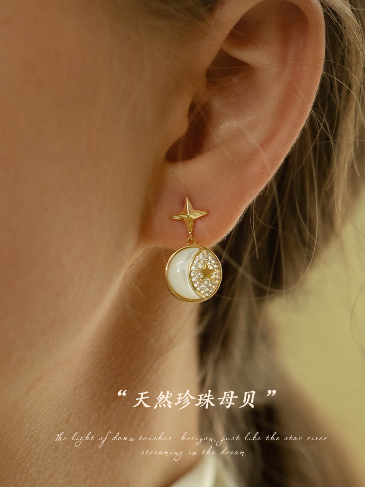 High-Sensed Earring Female with Moon Star Ear Head Print Air Needle Precision and Limited Cold Wind Ear