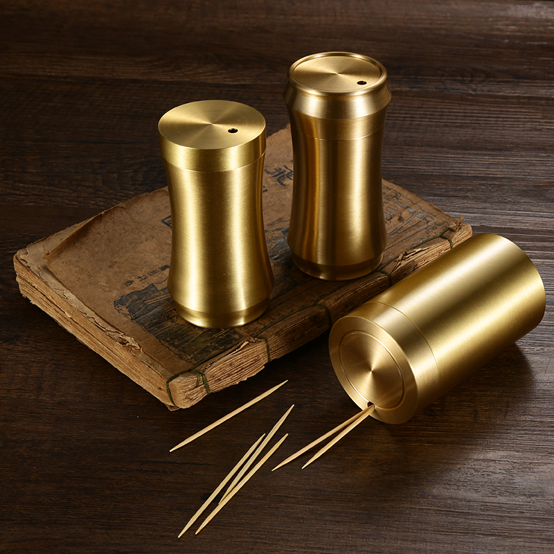 Brass tooth drum household living room high-grade personality boutiques dust proof convenient tooth cans metal lattice box