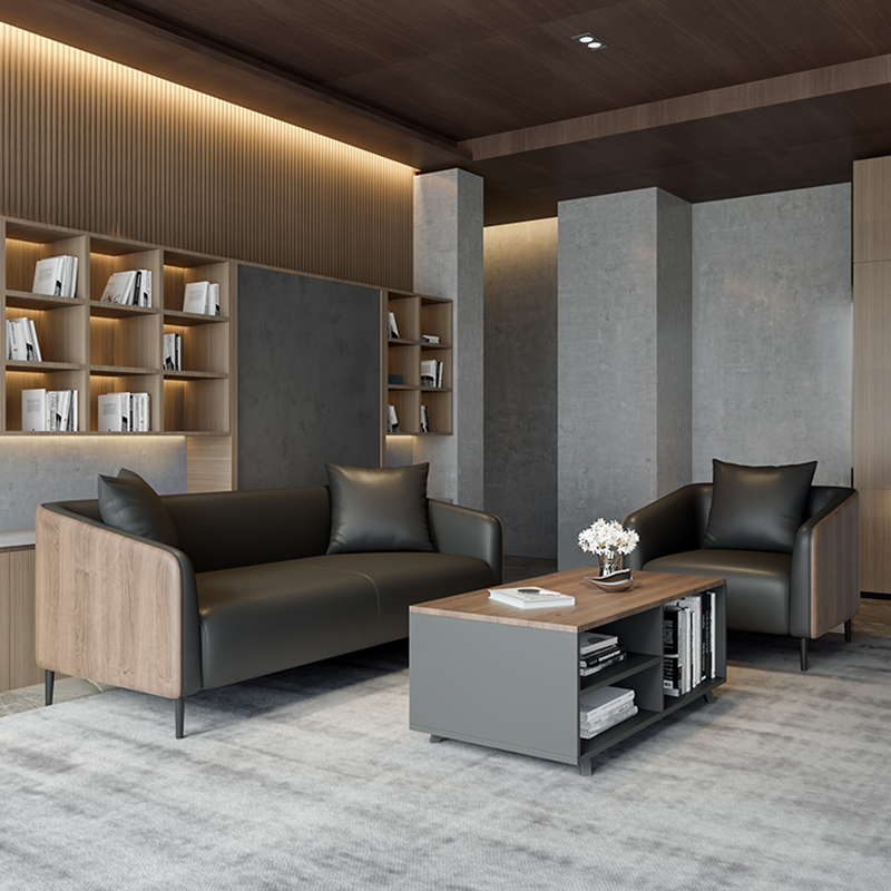 New single leather art office sofa simple reception room tea table combination set business modern simple fashion