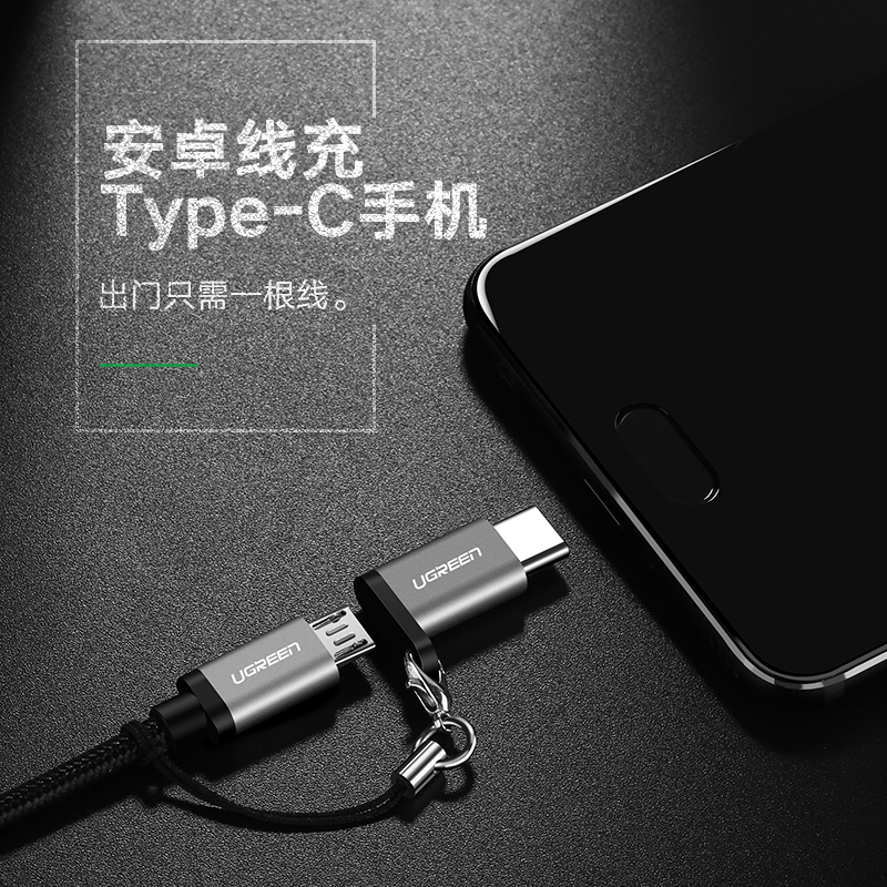 UGREEN GREEN UNION TYPE-C ADAPTER OG ANZOR MICRO-USB CHARGING TWO-IN-ONE DATA LINE CONNECTED