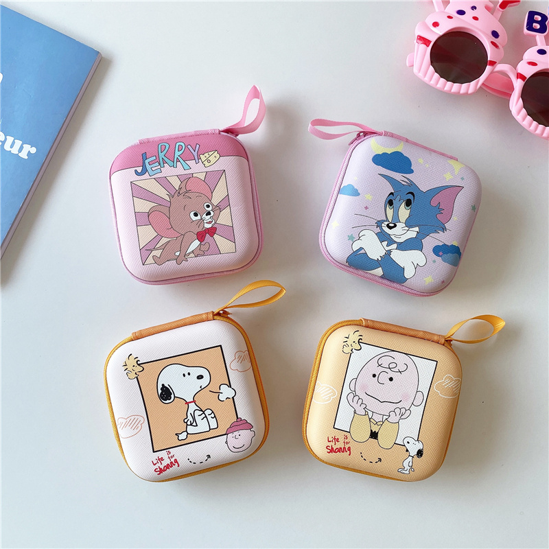 Data line charger containing bag portable cute cartoon Bluetooth headphones containing cartridge hand rope with zero wallet