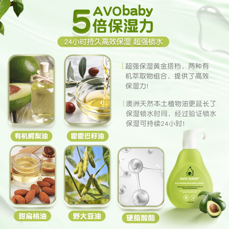 AVO massage oil 125ml AVO bath two-in-one 500ml AVO gluteal cream 100ml AVO body milk 250ml
