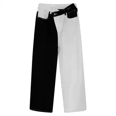 Sai Xiaolao original contrast jeans women's design sense high waist thin straight loose wide leg pants ins tide