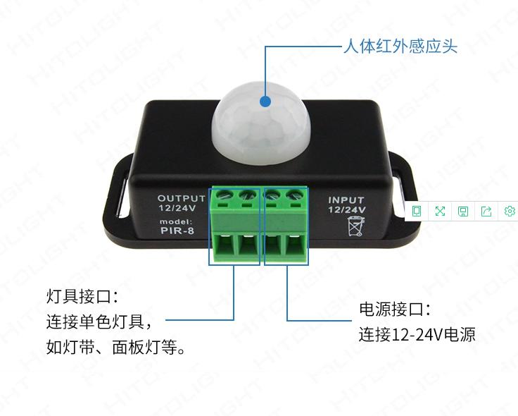 Human infrared spectroscopy sensor monochromatic LED light with PIR switch wardrobe hallway stairs acoustic control luminaire dimming