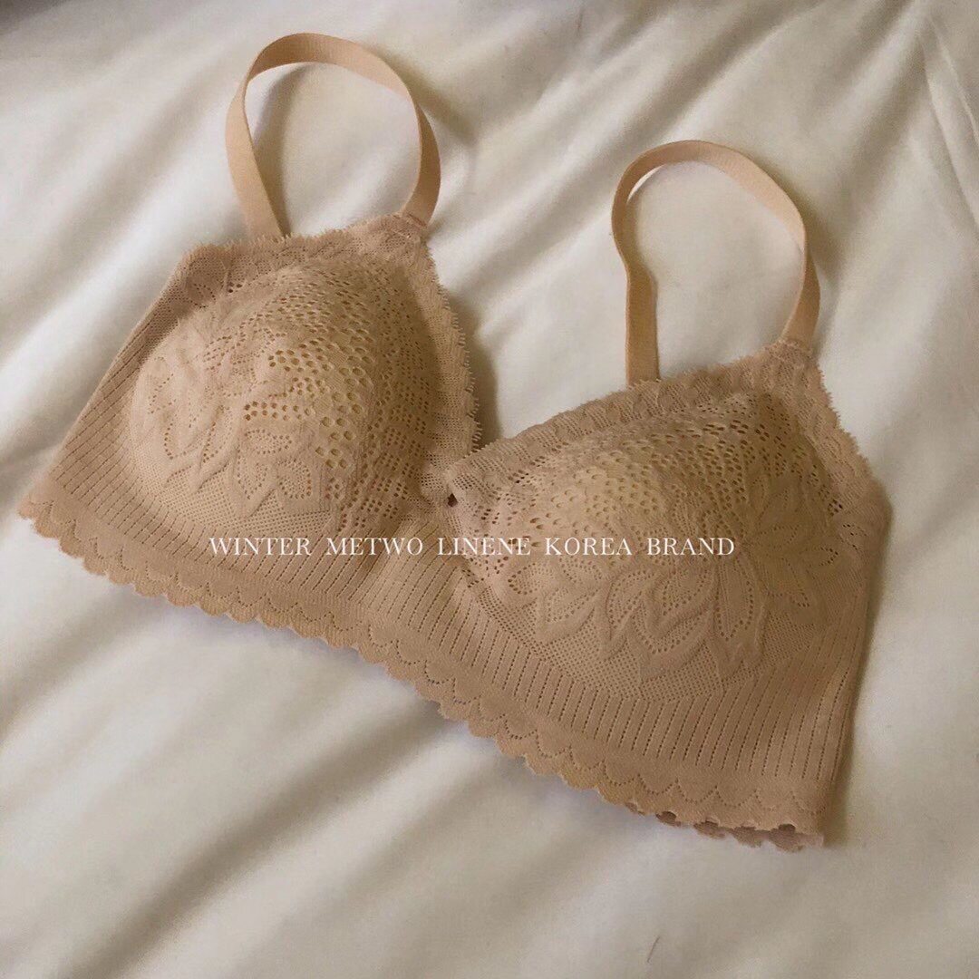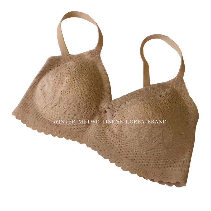 UL girl latex underwear no steel ring shockproof gathering bra adjustable sleep one-piece lace bra thin