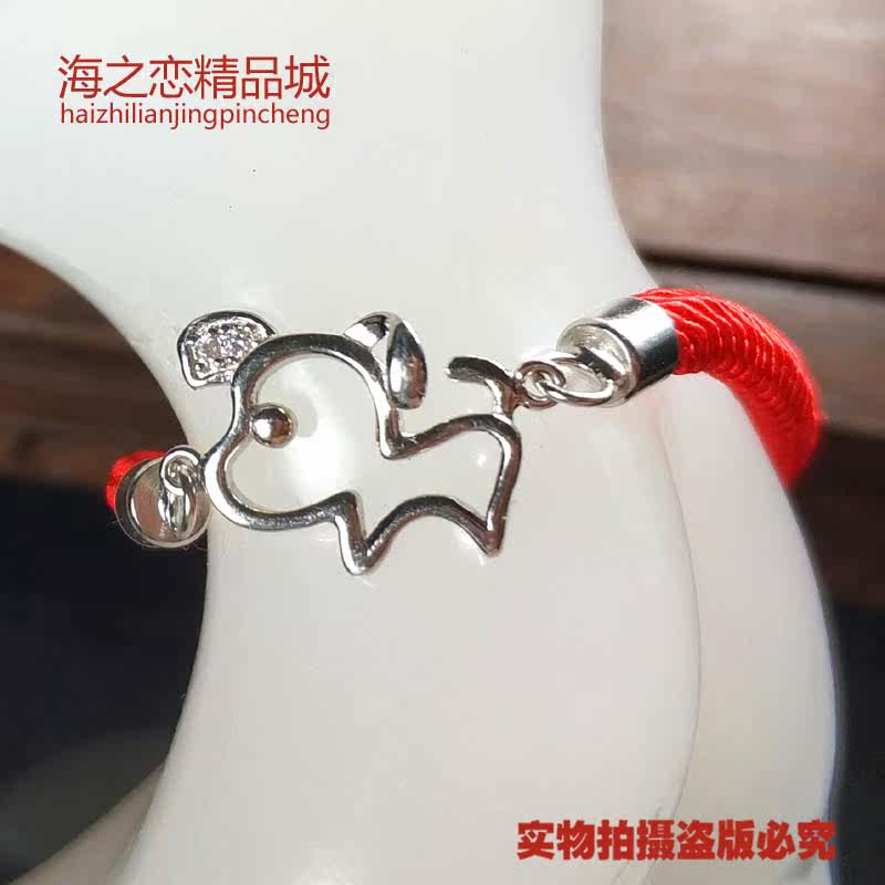 925 silver hand chain Zodiac dog red rope Hand rope belongs to the dog mascot Simple national style transporter evil simple