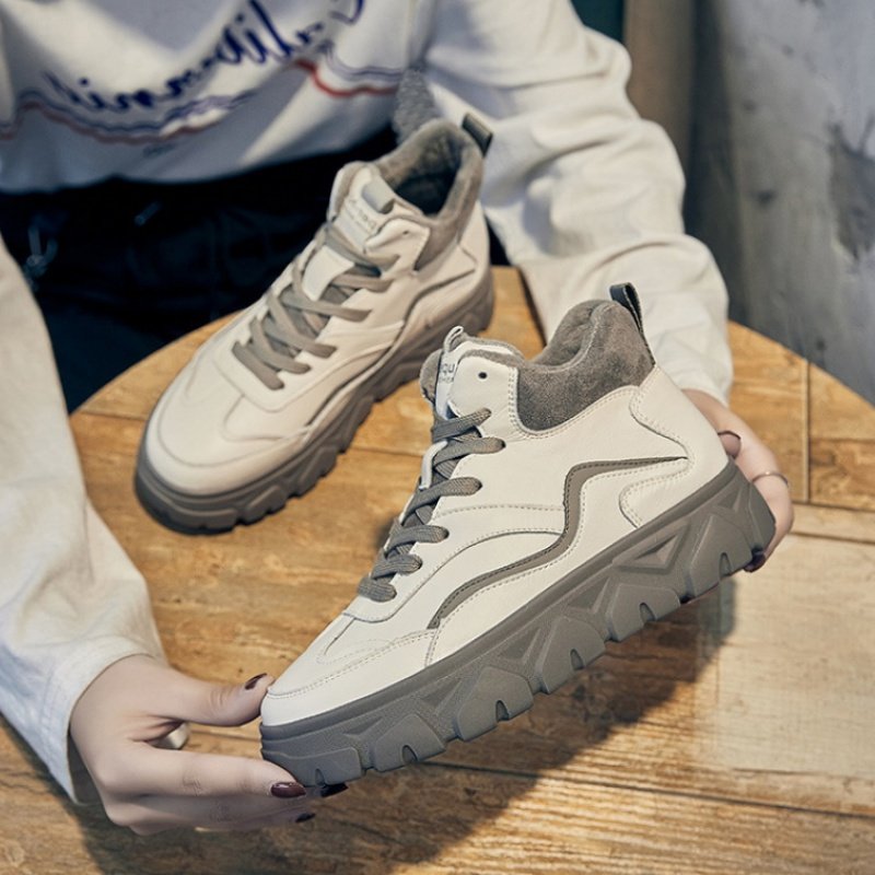 Hong Kong high-top daddy shoes female ins tide 2022 autumn and winter new all-match thick bottom heightened sports casual white shoes