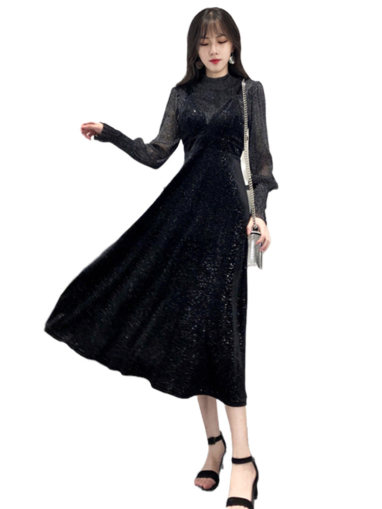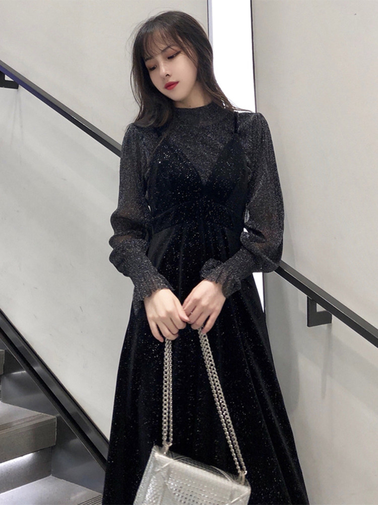 Spring and autumn women's clothing 2021 new fat mm large size belly-covering temperament dress Western style age-reducing two-piece suit skirt
