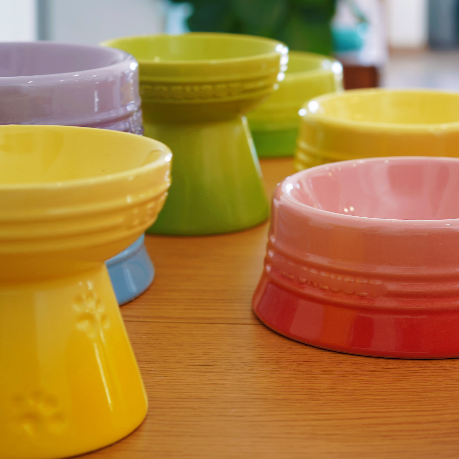 (Pink white asymptotic high foot pet bowl) (Green Grass Green Asymptotic High Foot Pet Bowl) (Lemon Yellowish Layer High Foot Pet Bowl) (Peach Powder Progressively High Foot Pet Bowl) (Baby Blue Gradual Layer High