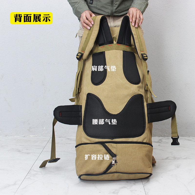 100L canvas can be expanded oversized capacity long distance travel clothes quilt double shoulder luggage school bag outdoor large rucksack