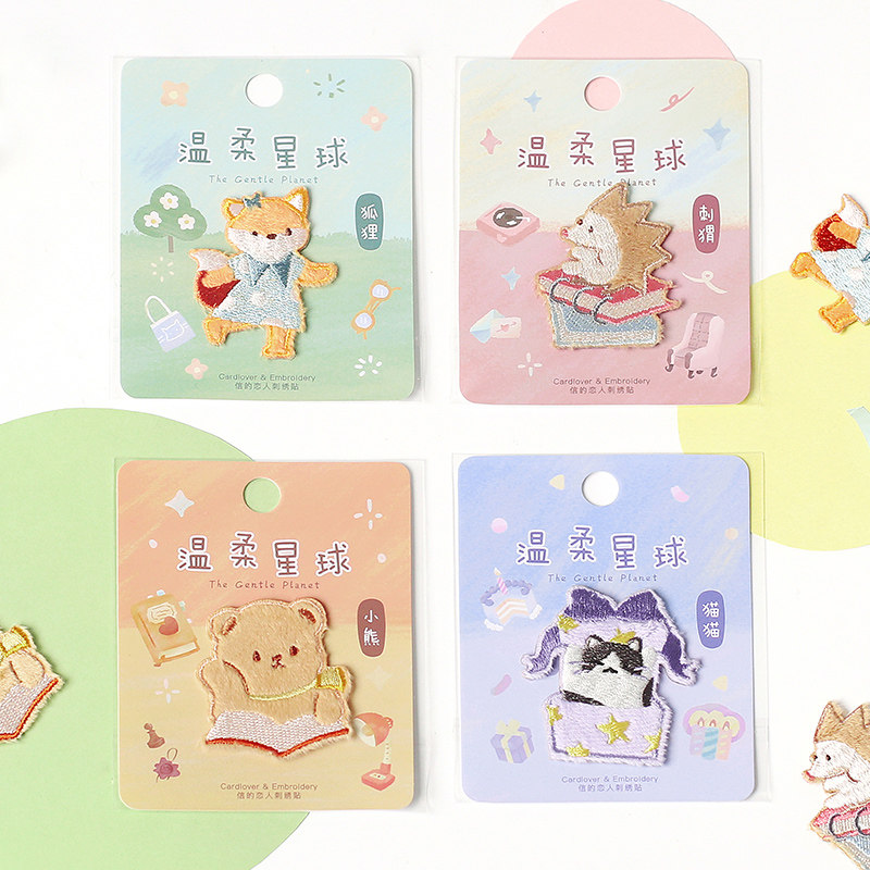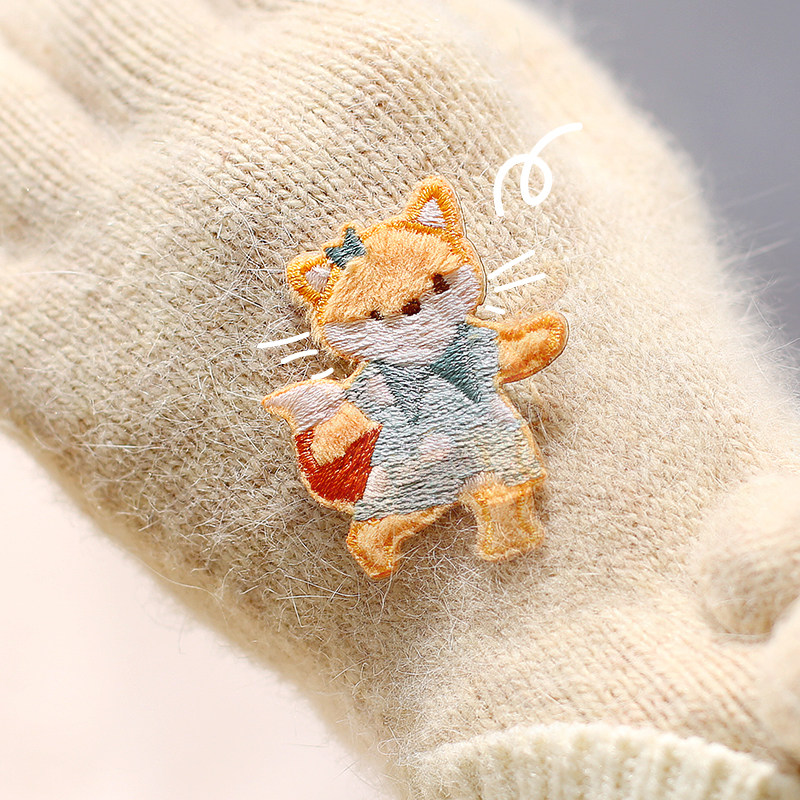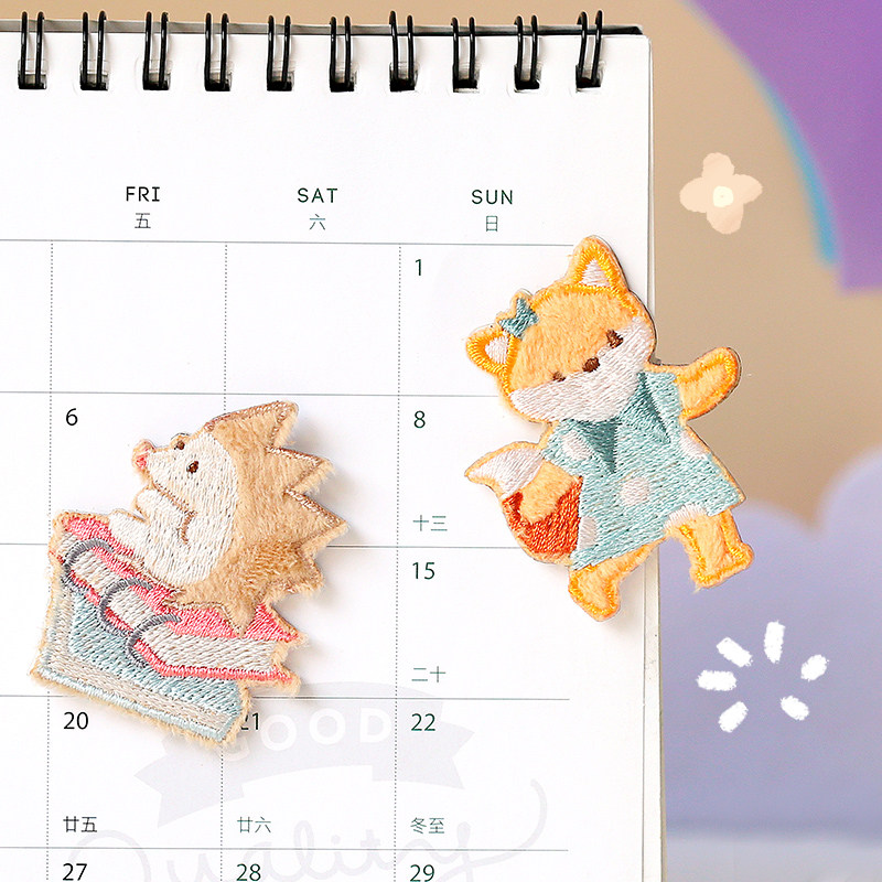 Gentle star embroidery stickers cute animal bear kitten fox hedgehog scarf wool clothes hole sticker self-adhesive
