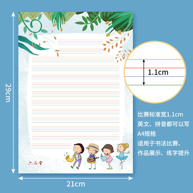 English calligraphy works Paper round body English special paper Flower body practice writing competition paper Pinyin works Paper Pen Letter paper Junior high school students Primary school students English four-line grid practice paper A4 hard pen