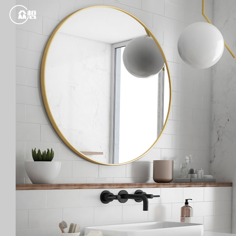 Light Extravagant Nordic Makeup Room Bathroom Mirror Wall-mounted Makeup Room Wash Bench Makeup Mirror Hanging Wall Bathroom Mirror Round Mirror