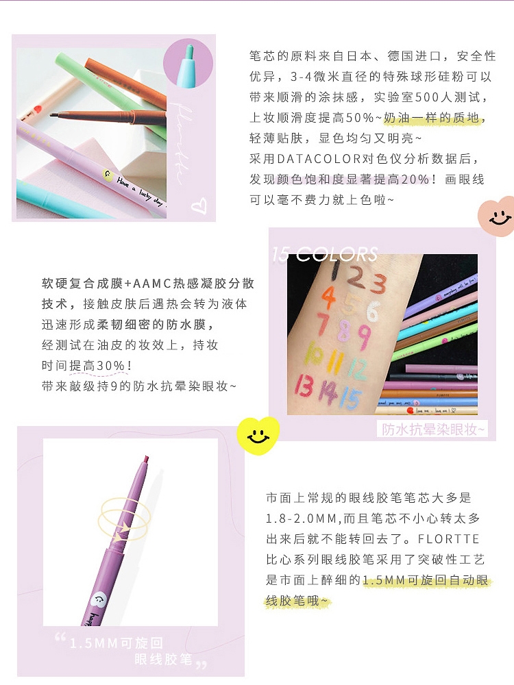 flortte Floria flagship store official color eyeliner glue pen waterproof non-smudge lasting flower