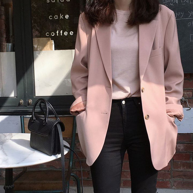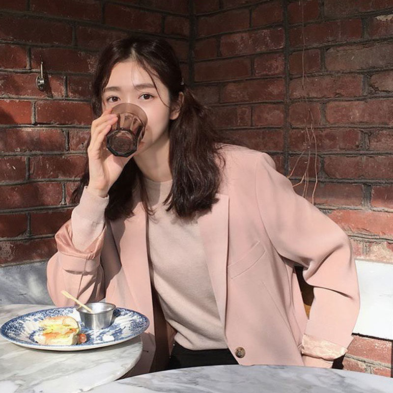 SNICYKER 2023 Spring dress and fresh - Korean version of the temperament retro - haven wind slim pink coat