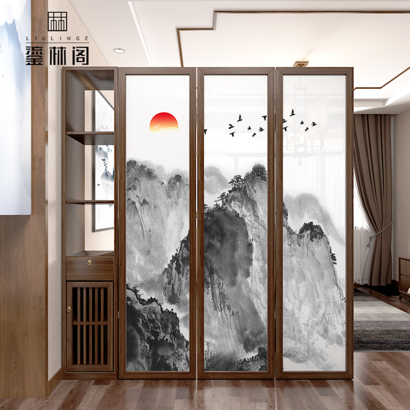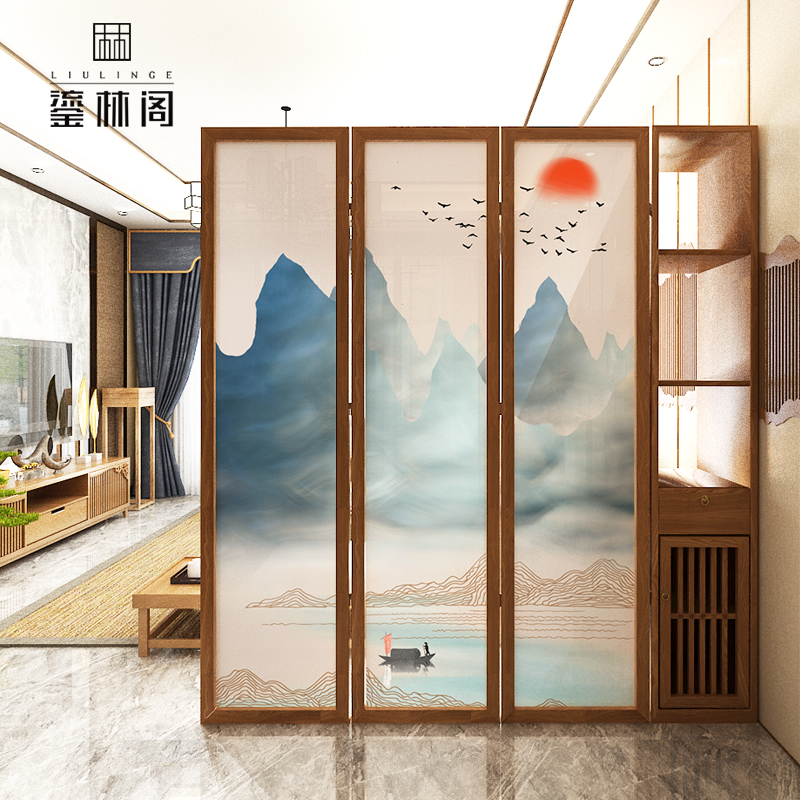 Chinese-style screen partition living room folding mobile entry porch partition cabinet modern bedroom shelter rack seat screen