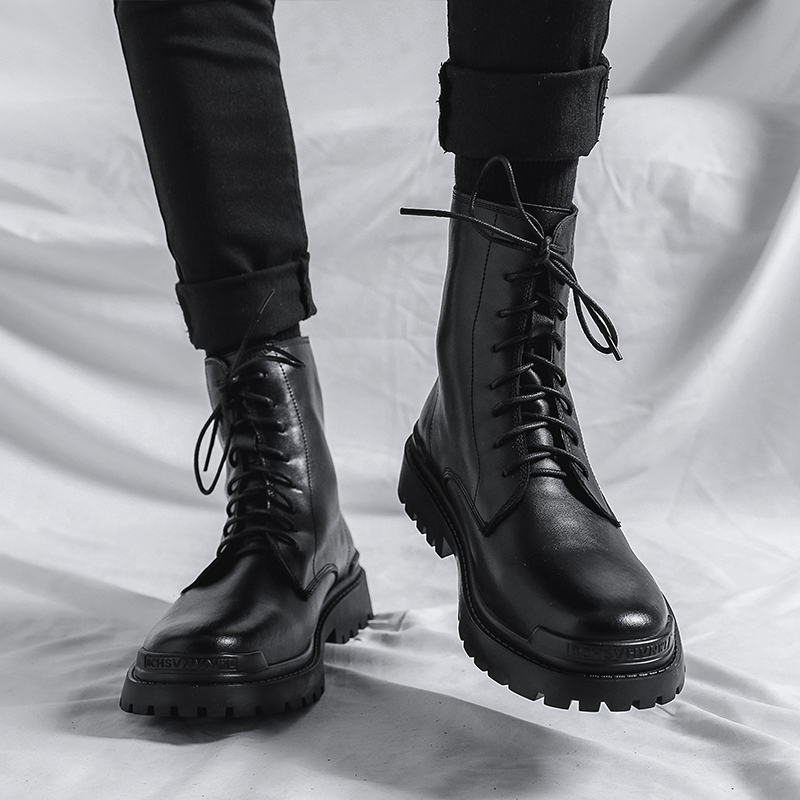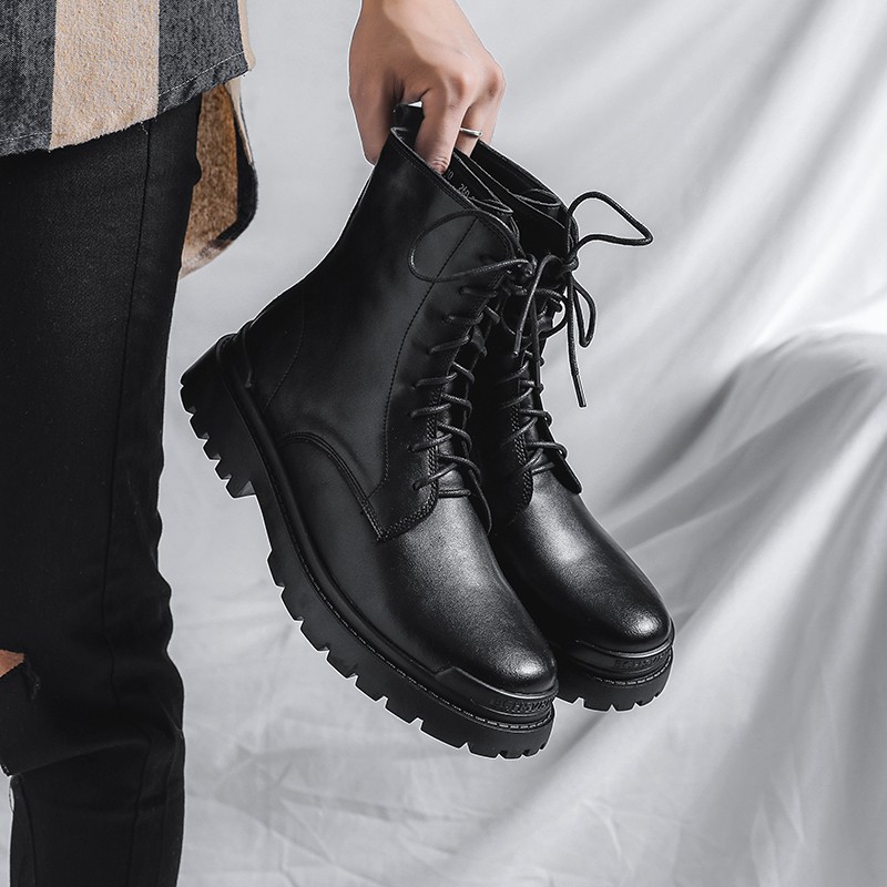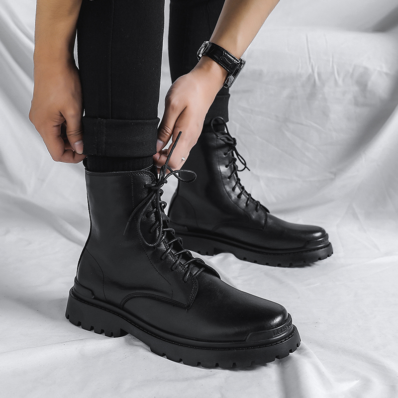 Martin boots men's winter plus velvet high-top British style leather mid-tube leather boots thick bottom tide brand men's boots warm cotton shoes